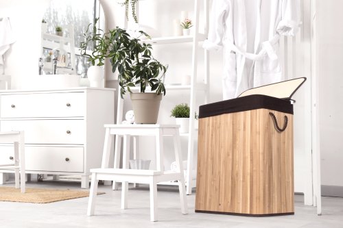 Jak vybrat nejlepší koš na špinavé prádlo? Co se materiálu koše týče, doporučujeme jednoznačně bambus. Je odolný vůči vlhkosti, takže jej můžete bez obav umístit do koupelny nebo servisní místnosti s pračkou. Zároveň je i vizuálně velmi příjemný – kombinace přírodního materiálu a barevně sladěné vložce a držadlům evokuje pocit čistoty, navíc se i hodí k jakémukoliv interiéru.