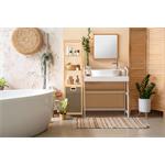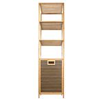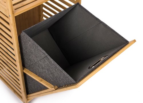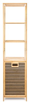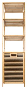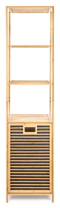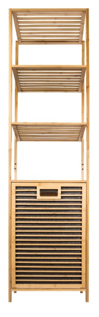 Bambusový koupelnový regál s košem na prádlo dodává interiéru příjemný přírodní dojem. Jeho jemné a teplé barvy mohou oživit a doplnit jakýkoliv prostor bez ohledu na jeho styl – skvěle ladí s rustikálním i moderním nebo minimalistickým interiérem, přizpůsobí se stylu vašeho domova.