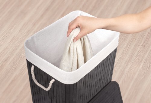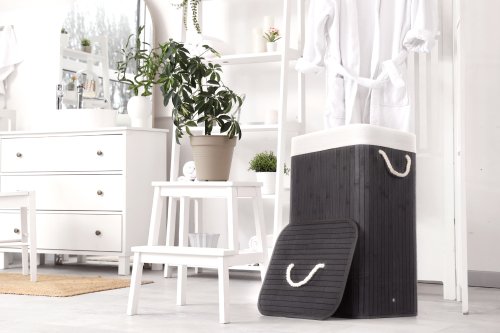 Jak vybrat nejlepší koš na špinavé prádlo? Co se materiálu koše týče, doporučujeme jednoznačně bambus. Je odolný vůči vlhkosti, takže jej můžete bez obav umístit do koupelny nebo servisní místnosti s pračkou. Zároveň je i vizuálně velmi příjemný – kombinace přírodního materiálu a barevně sladěné vložce a držadlům evokuje pocit čistoty, navíc se i hodí k jakémukoliv interiéru.
