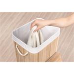 Bambusový koš s pratelnou látkovou vložkou přidává interiéru příjemný přírodní dojem. Jeho jemné a teplé barvy mohou oživit a doplnit jakýkoliv prostor bez ohledu na jeho styl – skvěle ladí s rustikálním i moderním nebo minimalistickým interiérem, přizpůsobí se stylu vašeho domova.