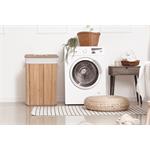 Jak vybrat nejlepší koš na špinavé prádlo? Co se materiálu koše týče, doporučujeme jednoznačně bambus. Je odolný vůči vlhkosti, takže jej můžete bez obav umístit do koupelny nebo servisní místnosti s pračkou. Zároveň je i vizuálně velmi příjemný – kombinace přírodního materiálu a bílé vložky a madel evokuje pocit čistoty, navíc se i hodí k jakémukoliv interiéru.