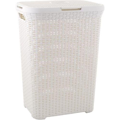 Rozměry 44 x 26 x 61 cm, objem koše 60 litrů. Plastová imitace ratanu, materiál polyratan. Možnost otevírání víka na libovolnou stranu. Otvory ve výpletu zajišťují cirkulaci vzduchu. Postranní úchyty pro snadnou manipulaci. EAN 3253920707000