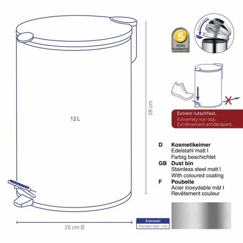 Pedálový koš Mats v matné stříbrné barvě je nejen elegantní, ale také praktický doplněk do každé domácnosti či kanceláře. Díky systému tichého zavírání se víko dovírá hladce a bez rušivého hluku. Protiskluzová základna zajišťuje stabilitu a pohodlné používání.