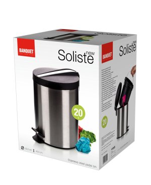 Odpadkový koš SOLISTE v nerezovém provedení. Má matný povrch, plastové víko a vnitřní vyjímatelnou nádobu na odpad. Koš má nášlapný systém na otevírání víka pro hygienickou manipulaci.
