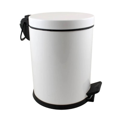 Kulatý odpadkový koš s nášlapným pedálem. Koš má vyjímatelnou vnitřní černou galvanizovanou plastovou nádobu. Dno nádoby je chráněno plastovým podstavcem, který nekoroduje a chrání podlahu proti poškrábání. V zadní části koše je sklopná manipulační rukojeť. Koš je z nerezavějící oceli s povrchovou úpravou. Objem 12 litrů, výška koše 35.5 cm, průměr 24.5 cm. EAN 0000006830809