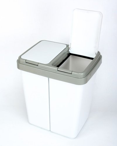 Odpadkový koš DUO na tříděný odpad vyrobený z vysoce kvalitního plastu. Otvírání pomocí klipu na víku. Koš se snadno používá, je vybaven systémem pro snadné otevírání a zavírání a těsně přiléhajícím víkem, které účinně zabraňuje úniku nepříjemných pachů. Dva samostatné koše spojené aretací na spodní straně koše. Obruče pro snadné uchycení odpadkového pytle. Rozměry koše 32 x 21 x 46 cm, rozměry celku 44 x 32 x 50 cm, objem 2 x 25 litrů. EAN 5906485656631