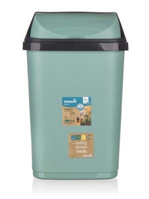 Odpadkový koš s výsuvným víkem je opatřen odnímatelnou horní částí pro snadné vyjmutí sáčku s odpadky. Součástí koše jsou nálepky na třídění odpadu (sklo, papír, bio a plast + kov) kterými lze koš označit.