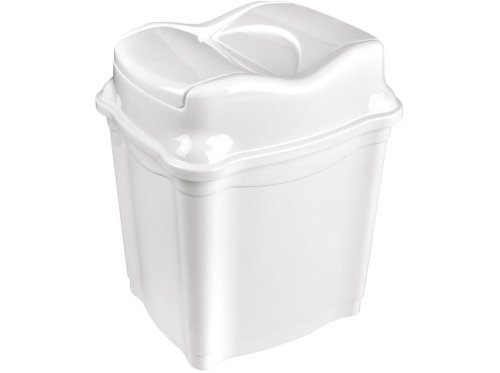 Odpadkový výklopný koš WHIRPOOL. Tento plastový odpadkový koš vyniká zejména originálním designem víka ve tvaru vlny. Díky rozdělenému víku uprostřed je zde snadnější vhazování větších odpadků.