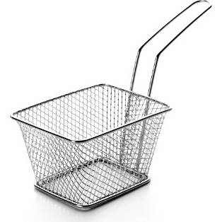 Mini hranatý fritovací košíček z nerezu na originální servírování smažených dobrot. .