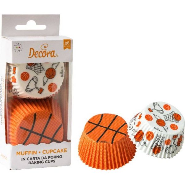 Papírové košíčky na cupcakes, motiv basketbal. V balení 36 ks.