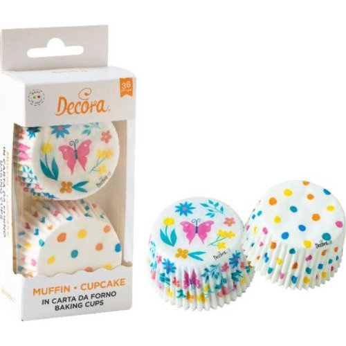 Košíčky na muffiny s puntíky a motýlem. V balení 36 ks, rozměry 50 x 32 mm.