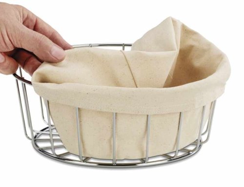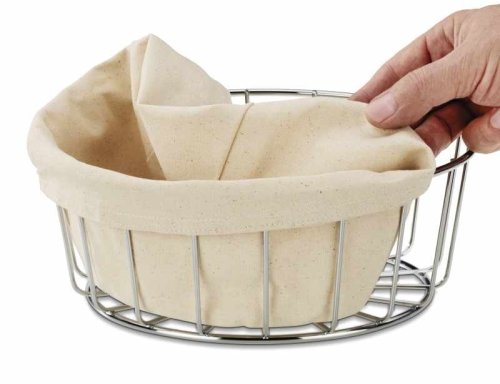 Pro krásně prostřený snídaňový stůl: kulatý koš na chleba Miri vyrobený z kovu s připojeným bavlněným sáčkem. Pěkný detail: souhra pratelné tašky (béžová vnitřní část ze 100% bavlny) a kovového rámu. Chlebník má průměr 26,5 cm a je vysoký 10 cm. Kovová s látkovou vložkou ze 100% bavlny 26,5cm , 10cm v