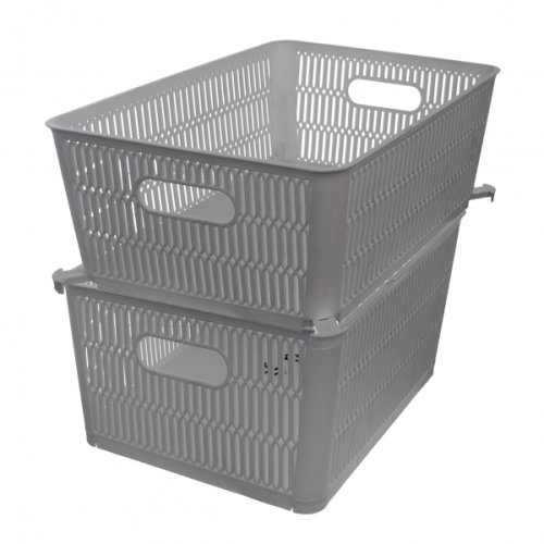 Košík využijete v kuchyni na uložení potravin (brambory, cibule, ovoce), ve špajzu, všude v domácnosti, v dílně, v koupelně na uložení drobností... Košíky jsou stohovatelné, na dně košíku jsou v každém rohu vysunovací klapky, které umožňují košíky skládat na sebe. Barva šedá. Rozměry 28.5 x 23 x 12 cm. EAN 8592381176914