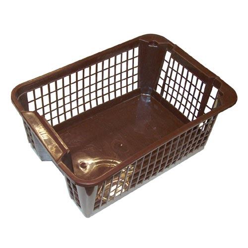 Kvalitní plastový stohovatelný košík v barvě hnědá.
