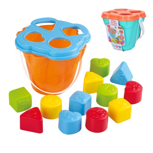 Barevný kyblík s pěti tvary na víčku, kterými můžeš vkládat 15 barevných kostiček. Zábavná hra pro nejmenší, která rozvíjí jemnou motoriku a poznávání barev a tvarů.
