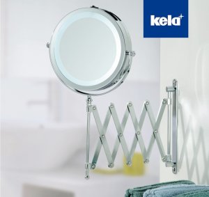 Samotný kruhový zrcadlový povrch má průměr 14 cm. Přední strana má 1násobné zvětšení a zadní strana je 3krát větší. Zrcátko je rozšiřitelné na délku 20 - 65 cm. Samotný zrcadlový povrch je navíc otočný. Kromě toho můžete použít přepínač k osvětlení povrchu zrcadla bílým světlem LED! Dodávka obsahuje příslušenství (bez baterií) pro snadnou a rychlou montáž na stěnu. Pro LED světlo vyžaduje 4x AAA 1,5V baterie.-barva: stříbrná lesklá-materiál: chrom-výška: 36 cm-průměr: 17,5 cm
