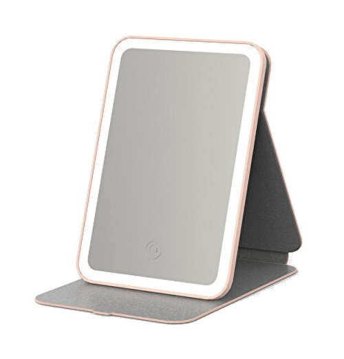 Elegantní a praktické cestovní zrcátko, které se díky své kompaktní konstrukci a ochrannému krytu z měkké EKO kůže stává ideálním doplňkem do kabelky, batohu nebo cestovní tašky. Nabízí tři barevné tóny LED osvětlení, dotykové ovládání a plynulé stmívání.