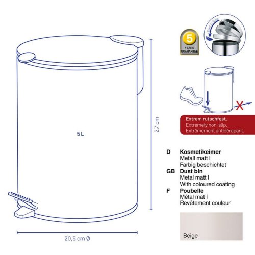 Kosmetický koš 5 l MATS béžová KL-23704