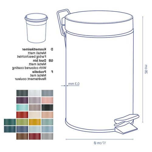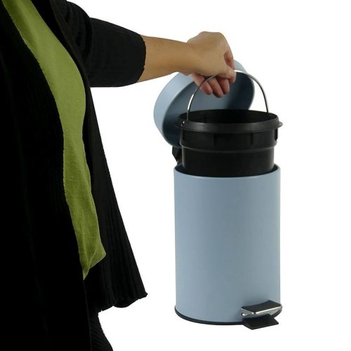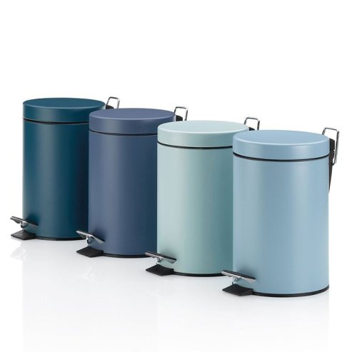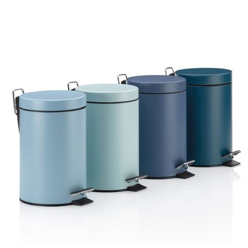 Na menší odpad v kuchyni nebo koupelně: šlapací koš z matného kovu v barvě mrazově modré. Guma na spodní straně zajišťuje pevný stojan.Vnitřní vědro je vyrobeno z černého plastu a má praktické ucho na přenášení. Odpadkový koš je vysoký 26 cm a má průměr 17 cm. objem 3l. Kov s práškovým nástřikem matný 3L, 17cm , 26cm v