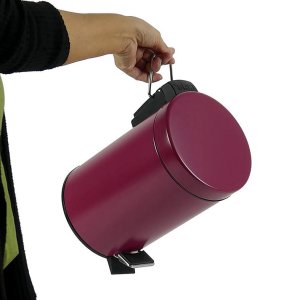 Na menší odpad v kuchyni a koupelně: kovový šlapací koš s matným povrchem. Vnitřní vědro je vyrobeno z černého plastu a má rukojeť. Odpadkový koš je vysoký 26 cm a má průměr 17 cm. objem 3l. Barevná varianta: malinová červená. Kov matný práškový lak 3L, 17cm , 26cm v