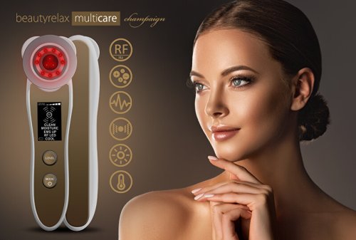 BeautyRelax Multicare patří mezi absolutní špičku v oblasti kosmetických přístrojů pro péči o pleť. Nabízí moderní technologie, které jsou nejpoužívanější v dermatologii a kosmetickém odvětví. K dispozici vám bude stále 6 různých typů ošetření. Vybrat si tak můžete přesně podle vašich individuálních potřeb. Začněte o pleť pečovat na profesionální úrovni! Co můžete očekávat? Postupné zlepšení pružnosti pleti. Pokožka bude působit svěžejším dojmem. Eliminaci hlubokých i jemných mimických vrásek. Zvýraznění charakteristických kontur obličeje. Stimulaci obličejových svalů. Prokrvení a okysličení podkožní tkáně. Jemná lymfatická masáž pro redukci otoků obličeje. Účinnou podporu buněčného metabolismu a vstřebávání živin. Hlavní výhody Neinvazivní ošetření (přístroj neproniká přímo skrz pokožku). Ošetření bez jakýchkoliv nepříjemných pocitů. Bez nežádoucích trvalých změn pigmentace pleti. Ihned po proceduře lze použít kosmetické přípravky. Bez omezení pokračovat v jakýchkoliv aktivitách (např. před společenským programem). Specifikace 5 automatických programů s přednastavenými režimy ošetření pleti. Vhodné pro komerční i soukromé použití. Aplikační hlavice je vhodná pro všechny typy pleti. Ergonomický design – příjemně se při ošetření pleti drží v ruce. Bezdrátové použití díky zabudované nabíjecí Li-ion baterii. Nabíjení pomocí USB kabelu (součástí balení). Technologie ošetření pleti přístrojem BeautyRelax Multicare: Radiofrekvence Aplikační hlavice generuje energii prostřednictvím radiofrekvenčních vln se zcela specifickým výkonem a frekvencí. Radiofrekvenční vlny jsou optimalizovány k tomu, aby způsobily tepelný gradient, který významně ovlivňuje procesy ve vrstvě dermis. Dodaná energie aktivuje remodelaci kolagenových vláken a elastinu. Maximální možné zacílení energie i v lokalitách s výraznější tukovou vrstvou a následná excitace metabolických procesů má významný vliv na velmi efektivní vyhlazení povislých a deformovaných kontur. Galvanický proud aplikační hlavice vytváří na svém povrchu proud s možností proměnlivého náboje. Řídící jednotka kosmetického přístroje umožňuje úpravu galvanického proudu takovým způsobem, aby docházelo ke kladnému či zápornému náboji. Kladná a záporná ionizace má odlišné účinky na pleť. Kladná ionizace – důkladné vyčištění pleti Kladná ionizace vytáhne záporně nabité nečistoty jako magnet. Zažijete skutečně čistou pleť jako nikdy předtím. Pouze čistá pleť je ta zdravá! Záporná ionizace – hloubkové vyživení pleti Galvanický proud penetruje výživové látky z kosmetických sér hluboko do pokožky. Je zabráněno vyschnutí na povrchu. Absolutní turboefekt pro vaše kosmetické přípravky! EMS Náš obličej je protkaný strukturou svalů. Obličejové svaly jsou zodpovědné za výraz a mimiku. Působením času svaly ztrácí přirozenou pružnost a elasticitu. Pleť působí fádním a unaveným dojmem. Aplikační hlavice BeautyRelax Multicare přenáší při kontaktu s pletí jemné elektrické mikropulzy, které pronikají přes svrchní část pokožky přímo k obličejovým svalům. Výkon a frekvence elektrických pulzů jsou speciálně upraveny tak, aby umožnily účinné, ale zároveň bezbolestné ošetření obličeje. Dochází ke kontrakci svalů a tím jejich posílení. Kolagenní a elastická vlákna jsou mechanicky stimulována. V oblasti obličeje docílíte zlepšení textury pokožky, jejího tónu a nárůstu elasticity. Pleť má omlazený a prozářený vzhled. To vše neinvazivně a bez jakýchkoliv nepříjemných pocitů. Vibrace Správná funkce lymfatického systému platí nejen pro tělesné končetiny, ale také pro náš obličej. Pokud máme lymfu a krevní oběh v pořádku, odvod nečistot z krve probíhá násobně lepším způsobem. Zlepšení krevního oběhu = stimulace lymfatického systému = lepší odvod nečistot a škodlivin z těla = krásná a zdravá pleť. Jednoduchá rovnice, která platí nejen pro obličej, ale pro celé naše tělo. Jemná vibrační masáž patří z technologického hlediska mezi nejjednodušší, ale zároveň velmi účinnou techniku ošetření pleti. Fotonová terapie Světlo je zjednodušeně viditelná část elektromagnetického záření různé frekvence. Dosahuje různých vlnových délek v intervalu 390 až 760nm (nanometrů). Lidské oko je schopné vnímat světlo o vlnových délkách v rozsahu od 400 do 800nm. Při fotonové terapii proniká světlo do těla jako proud energie ve formě fotonů. Je vědecky prokázáno, že různé vlnové délky světla mají za následek specifické účinky při péči o pleť. Studie ověřily reálný pozitivní terapeutický přínos pro živé tkáně a organismy na buněčné úrovni. BeautyRelax Multicare nabízí funkci červeného a modrého světla. Tepelná terapie Ošetření pleti aplikační hlavicí s nastavenou optimální teplotou výrazně ovlivňuje funkci lymfatického systému obličeje a jeho látkovou výměnu. Působením teploty kolem 15°C je obvykle ošetření pleti zakončeno. Pleť se zklidní a dochází ke stažení kožních pórů.