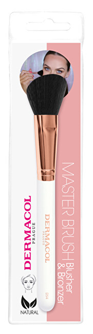 Kosmetický štětec v barvě rose gold a bílá je vhodný k aplikaci tvářenky a bronzeru. Zajistí přesnou a precizní aplikaci a stane se tak spolehlivým pomocníkem při každodenním líčení. Štětec je vyrobený ze syntetických vláken.