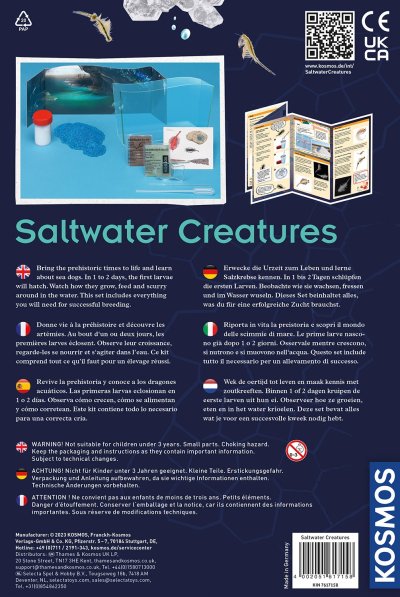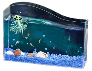 Vodní mazlíček žábronožka solná. Obsahuje nádrž na chování žábronožek, speciální sůl, krmení, vajíčka. Doporučený věk 8-12 let. Český návod ke stáhnutí v digitální podobě-QR kód na krabici a v návodu.