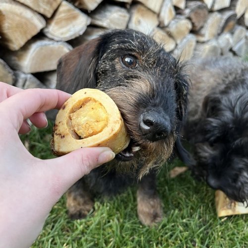 Sušená pochoutka v podobě morkové kosti.