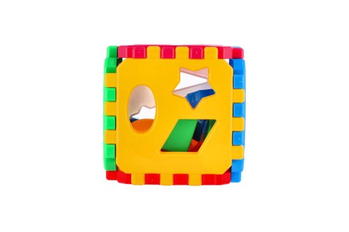 Zabavte nejmenší děti vkládačkou, která procvičí jejich motoriku a pomůže jim seznámit se s geometrickými tvary. Vkládací kostka má vyřezotvory, jimiž děti mohou vkládat kostky. Kostka má velikost 12 cm. Vhodné pro děti od 12 měsíců.