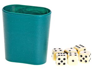 Hrací kostky bílé barvy, s kterými si zahrajete mnoho zajímavých a zábavných her. Balení obsahuje 6 ks kostek a kelímek. Baleno v krabičce.