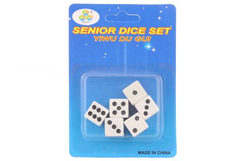 Hraci kostky na blistru - balení obsahuje šest kostek o velikosti cca 1,5 cm.Rozměr balení cca 9 cm X 12,5 cm.Vyrobeno z plastu.Výrobek není hračka.