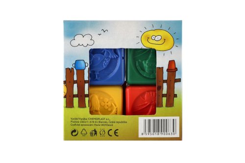 Sada osmi kusů barevných kostek pro nejmenší děti z plastu. Čtyři různé druhy plastových kostek pro děti, které rozvijí motoriku dětí. Hrací plastové kostky potěší všechny malé kluky i holčičky. Čtyři barvy s motivy zvířátek a spousta zábavy pro každý den. Tato didaktická hračka skvělým způsobem rozvine motoriku a fantazii vašich děti. Zábava pro každý den, to jsou plastové kostky pro děti.