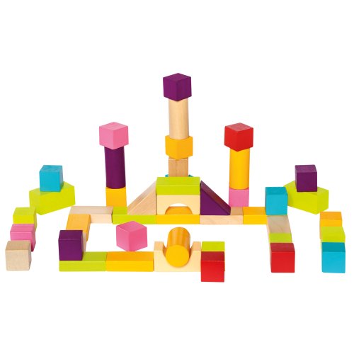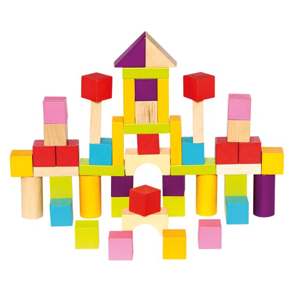 Kostky jasných atraktivních barev a různých tvarů v praktickém kyblíku z kartonu. Víko kyblíku promění balení v hravou vkládačku, může tak dále rozvíjet rozpoznávání tvarů a jemnou motoriku. Hlavní vlastnosti:vkládačka s 50 kostkamipraktické balení
