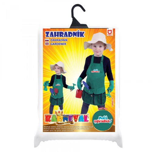 Zahradničení je tvůj koníček? Tak tento zahradnický kostým je právě pro tebe! Je určen pro děti ve věkovém rozmezí 3-7 let (104-134 cm). Balení obsahuje zástěru, klobouk (bez šňůrky), rukavice, rozprašovač a 6 ks zahradního nářadí.
