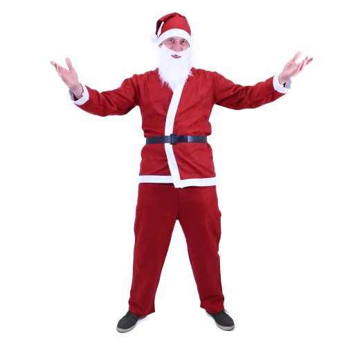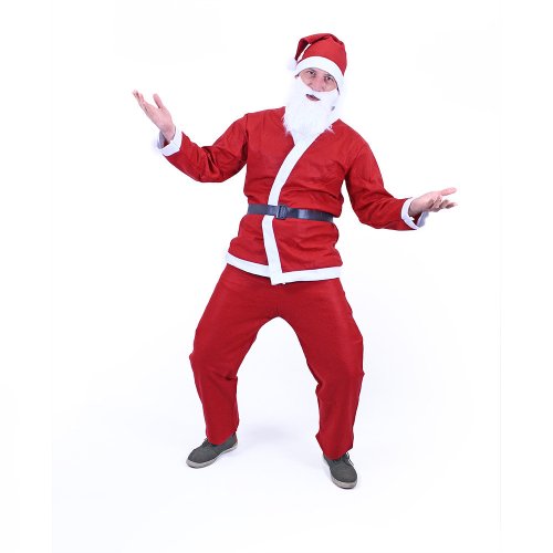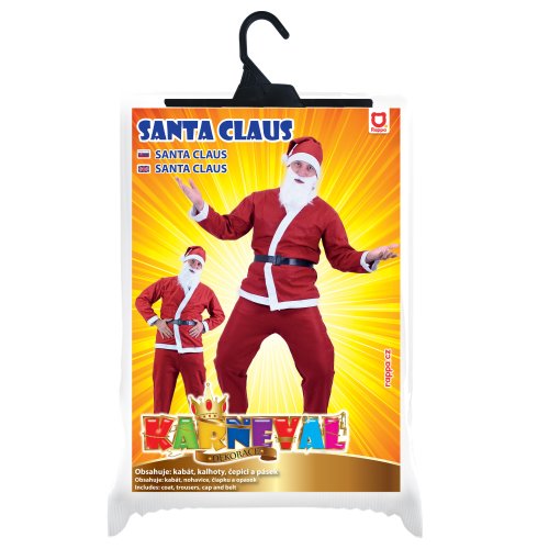 Stylový karnevalový kostým Santa Claus pro dospělé. Obsahuje kalhoty, kabátek, čepici a pásek. Univerzální velikost.