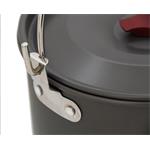 Elegantní tmavě šedý kotlík o průměru 21 cm a výšce 14 cm je vyrobený z anodizovaného hliníku, který zajistí dostatečnou tvrdost materiálu, odolnost proti korozi a také zvýšenou otěruvzdornost. Praktická poklička je vybavená madlem pro pohodlnou a bezpečnou manipulaci. Kotlík je dodáván spolu s praktickou síťovanou taškou, takže se dobře přenáší.