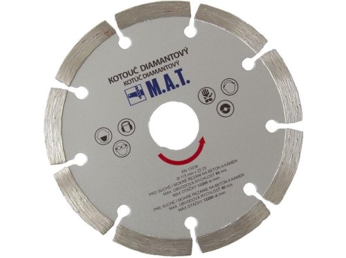 průměr kotouče: 180 mm průměr otvoru: 22,2 mm (součástí balení je redukční kroužek z 22,2 na 20 mm) pevné uchycení diamantových segmentů k nosnému disku kotouče