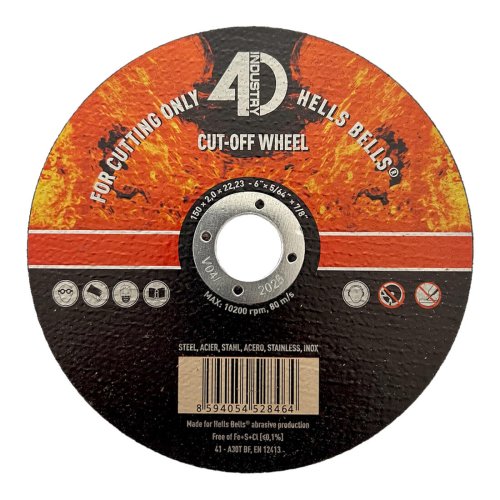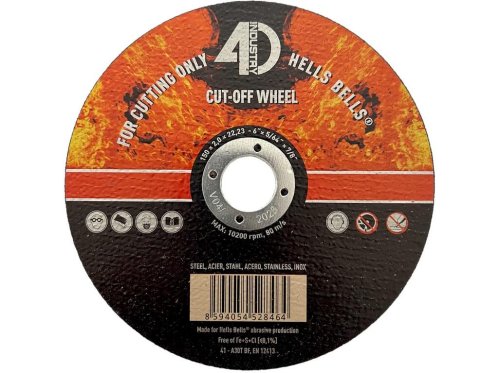 Řezné kotouče Hells Bells s bakelitovým pojivem jsou vyrobeny z prémiového korundového zrna, které je zárukou rychlého řezu a dlouhé životnosti. Neobsahují stopy železa, chlóru a síry. Jsou určeny pro řezání uhlíkových ocelí, konstrukčních ocelí a nerezových ocelí.