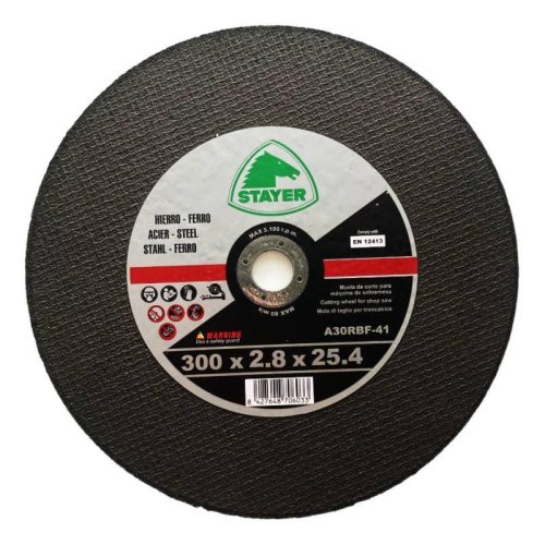 řezací kotouč pro stolní řezací stroje pro řezání středních profilů železa a nerezové oceli průměr kotouče: 300 mm výška kotouče: 2,8 mm vnitřní průměr: 25,4 mm max. pracovní rychlost: 80 m/s