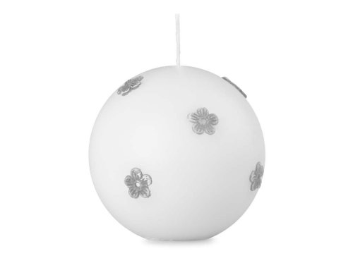 Koule s šedými květy 70mm mat bílá svíčka