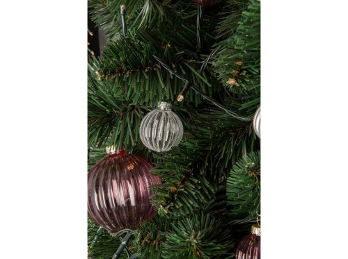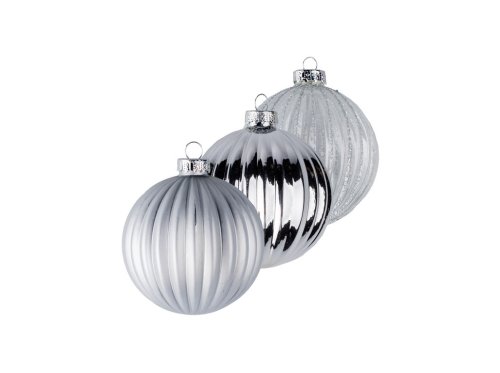 Sada 12 skleněných koulí na vánoční stromeček o průměru 40 mm. Koule jsou dodávány v barevném mixu – čirá s glitrem, stříbrná a šedá, což vytváří elegantní a harmonický vzhled.