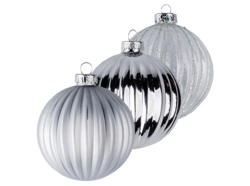 Koule sklo 6ks 80mm na stromeček mix, čirá s glitrem, stříbrná, šedá