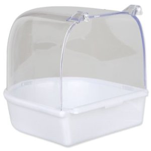 Plastová koupelna pro andulky a kanáry. Je vhodná pro hygienu ptáků. Zároveň slouží jako prima zábava pro malé opeřence. Pomocí úchytů se snadno upevňuje na dvířka klecí. Vyrobena z umělé hmoty. Vrchní díl je celoprůsvitný, zaoblený. Vhodná do všech klecí kromě kulatých.