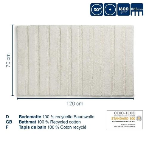 Neradi stojíte na studených dlaždicích po sprše nebo ráno na začátku dne. Pomoci může tento kvalitní koupelnový koberec Megan. S vysokou kvalitou 1800 g/m a výškou podlahy 16 mm budete v budoucnu stát na příjemně měkkém povrchu. S protiskluzovou spodní stranou. Dostupné v různých velikostech a barvách! Bathmat Megan v granitově šedé, 120x70 cm. 100% recyklovaná bavlna 120x70cm