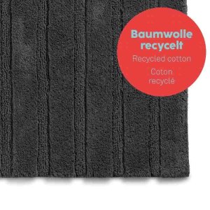 Neradi stojíte na studených dlaždicích po sprše nebo ráno na začátku dne. Pomoci může tento kvalitní koupelnový koberec Megan. S vysokou kvalitou 1800 g/m a výškou podlahy 16 mm budete v budoucnu stát na příjemně měkkém povrchu. S protiskluzovou spodní stranou. Dostupné v různých velikostech a barvách! Megan koupelnová předložka v šedobílé, 65 x 55 cm. 100% recyklovaná bavlna 65 x 55 cm