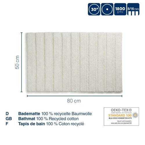 Neradi stojíte na studených dlaždicích po sprše nebo ráno na začátku dne. Pomoci může tento kvalitní koupelnový koberec Megan. S vysokou kvalitou 1800 g/m a výškou podlahy 16 mm budete v budoucnu stát na příjemně měkkém povrchu. S protiskluzovou spodní stranou. Dostupné v různých velikostech a barvách! Bathmat Megan in terra, 80 x 50 cm. 100% recyklovaná bavlna 80 x 50 cm