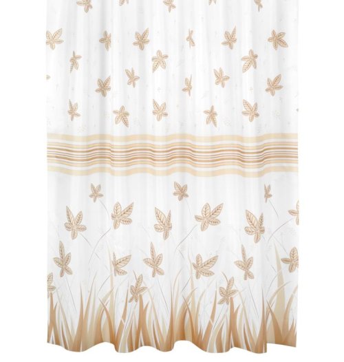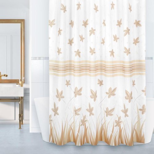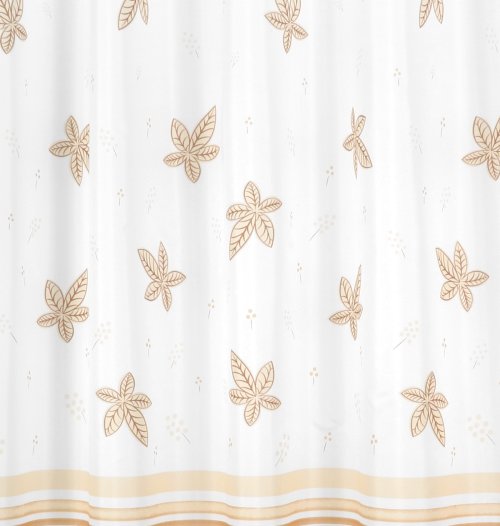 Koupelnový závěs materiál 100% Polyester délka 200 cm praní na 30°C mírný postup nesušit v sušičce žehlit maximálně na 110°C na horní straně otvory pro háčky součástí výrobku 12 háčků na zavěšení