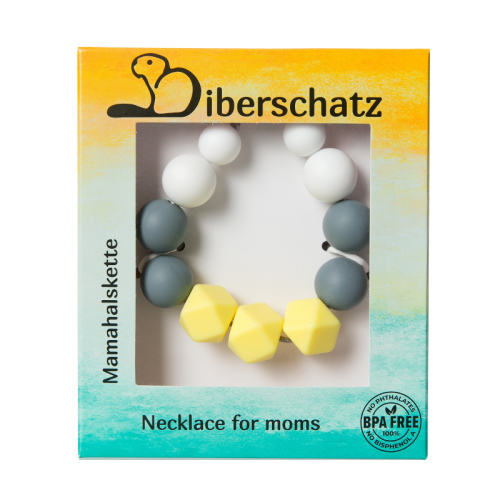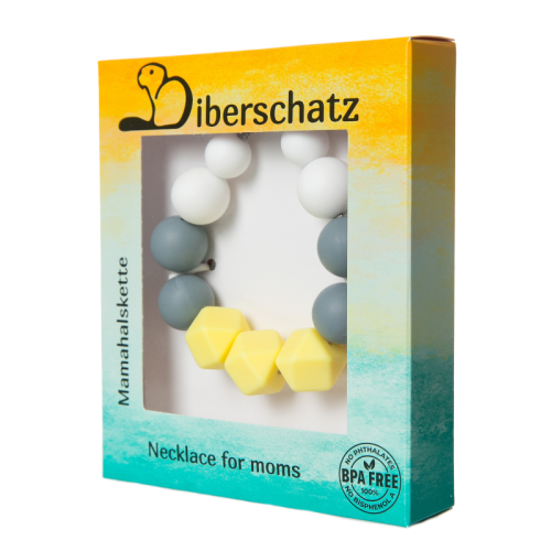 Před každým použitím náhrdelník pečlivě zkontrolujte. Při jakýchkoliv známkách poškození jej vyhoďte a nahraďte novým. Nikdy nenechávejte své dítě s tímto výrobkem bez dozoru. Kousací korále jsou určeny k nošení rodičem, nikoli dítětem, mohlo by dojít k uškrcení. Kousací korále nejsou hračka. Čištění: Před prvním použitím a po každém dalším použití kousací korále omývejte teplou mýdlovou vodou, opláchněte a důkladně osušte. Nevyvařujte jej, nedávejte jej do mikrovlnné trouby, sterilizátoru ani do myčky na nádobí. Udržujte kousací korále vždy čistý. Uchovávejte výrobek na čistém místě. Uchovejte si tyto informace pro budoucí potřebu. V souladu s evropskou normou EN71. Číslo výrobku najdete na obalu.