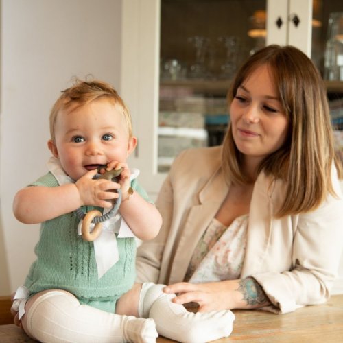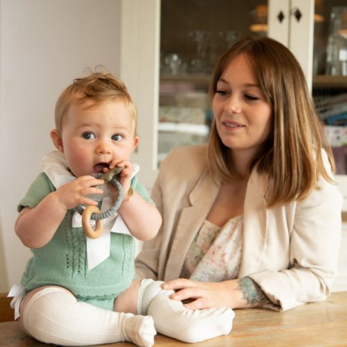 Skvělá "klasika" s novým nádechem: silikonový kroužek se zvířátkem a dřevěným kroužkem.