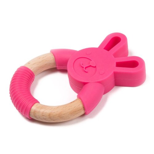 Kousátko B-TEETHER ANIMAL WOOD Pink Rabbit